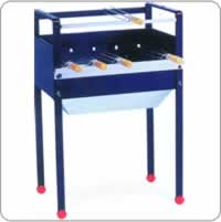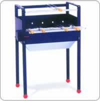 Com 5 espetos giratorios acionados por motor eletrico 110 ou 220v. Porta carvão substituível e Pés desmontáveis para transporte.