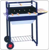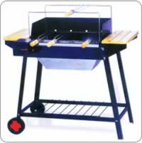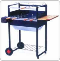 Com 5 espetos reguláveis multiponto ( 17 posições diferentes ). Porta carvão substituível, rodinhas para deslocamento e mesa de serviço retrátil.